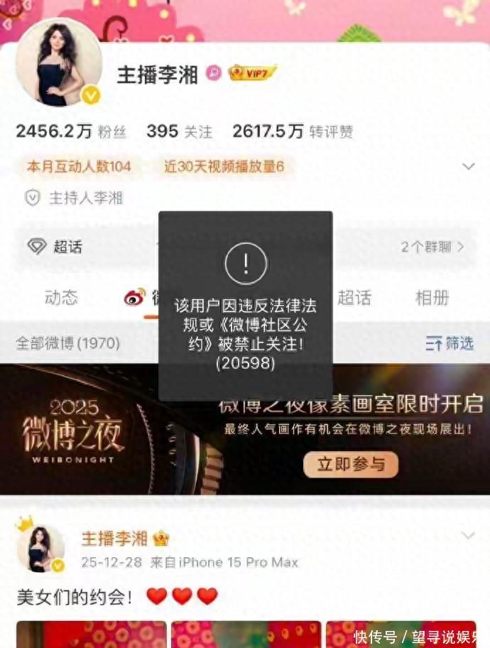 大快人心!李湘全平台被禁关注,拜金炫富终遭反噬:湖南的脸被你丢尽了!
